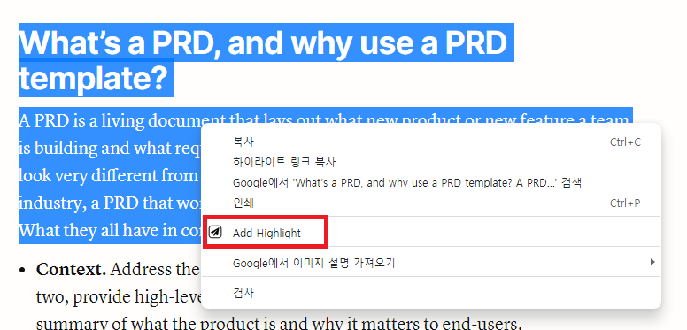 - 해당 기능은 Clip Page Content을 체크하지 않고 하이라이트 부분만 스크랩 내용에 추가할 때 유용합니다.