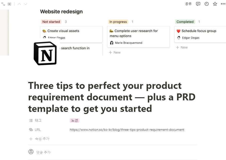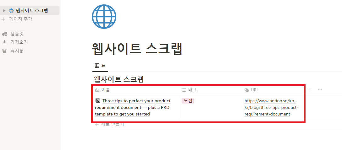 이제 해당 웹사이트가 정상적으로 노션(Notion)에 스크랩되었는지 확인해봅니다.