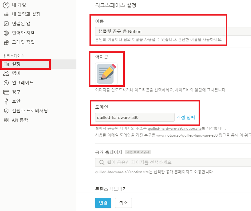 - Notion 워크스페이스 이름 변경