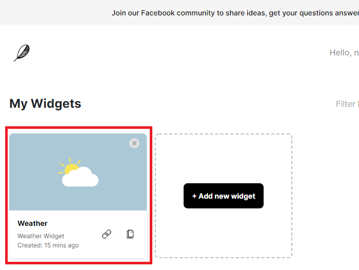 💡 Indify 사이트의 My Wdigets에 제가 방금 만든 날씨 위젯이 저장됩니다. URL을 까먹어서 다시 위젯 설정을 하여 생성할 필요없이 저장된 My Widgets을 사용하세요