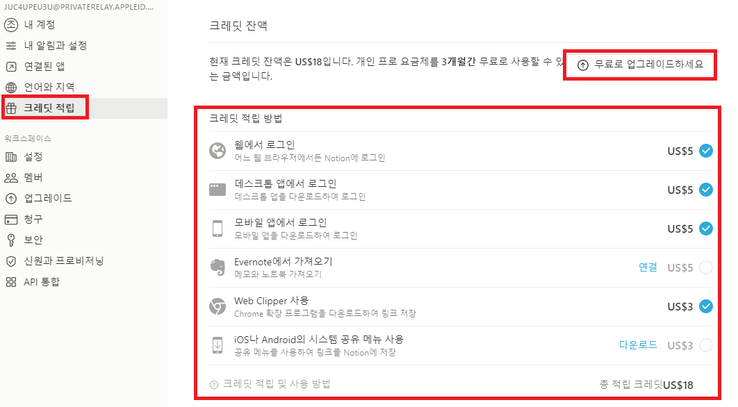 💡 크레딧 적립 방법은 웹에서 로그인, 데스크톱 앱에서 로그인, 모바일 앱에서 로그인, Evernote에서 가져오기, Web Clipper 사용, iOS나 Android의 시스템 공유 메뉴 사용이 있습니다.